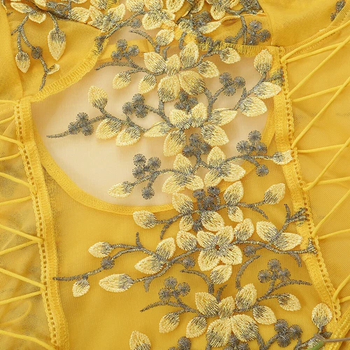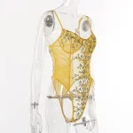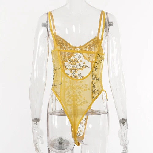 This embroidered mesh bodysuit lingerie is designed to make a bold yet elegant statement. Featuring a structured silhouette with sheer mesh panels and intricate floral embroidery, it enhances your natural curves while offering a confident, sculpted fit. The underwired cups provide gentle support, while lace-up side detailing adds a sensual, adjustable touch. Perfect for special occasions or elevated intimate wear, this piece blends allure with refined craftsmanship.