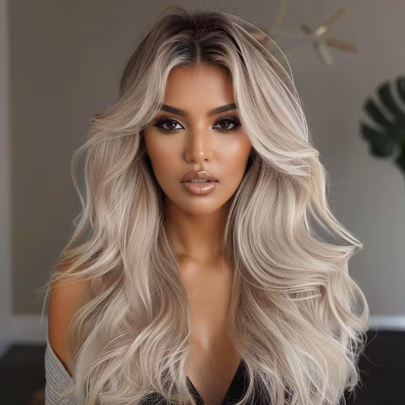 The 3×4 HD Lace gives you just enough parting space to look authentic while maintaining a structure that stays secure through your busiest days. The wavy texture isn’t just a style—it’s built-in volume that stays bouncy even after a long day of wear. Whether you’re heading to a photoshoot or just want to feel your best at brunch, the transition from dark roots to ice-blonde creates a framed, contoured look for any face shape.