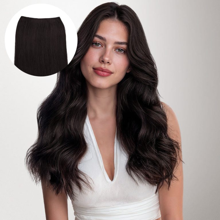The Double Genius Weft features a thin, flexible base that lies flatter and feels lighter than standard wefts, while still providing a fuller, more voluminous finish. It blends naturally and avoids the bulk of traditional weft installs.
