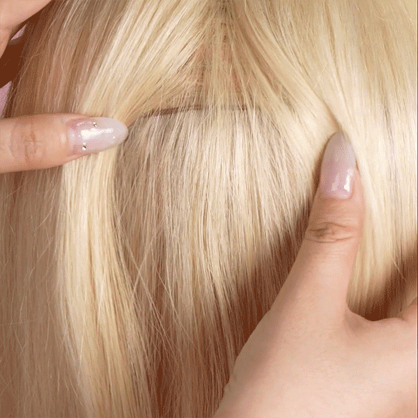 Apply firm pressure along the entire weft to lock in the bond. Repeat with each section until complete. Once installed, style your hair as desired—no heat or tools required.