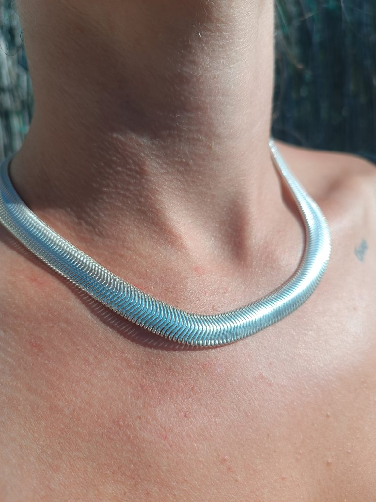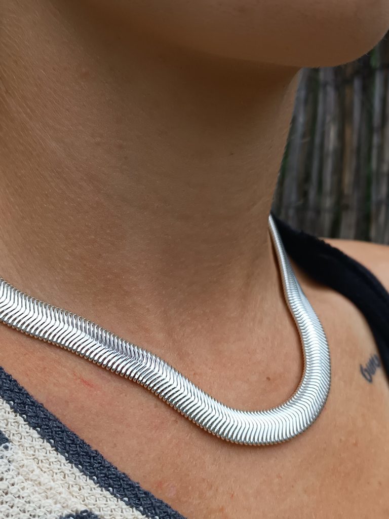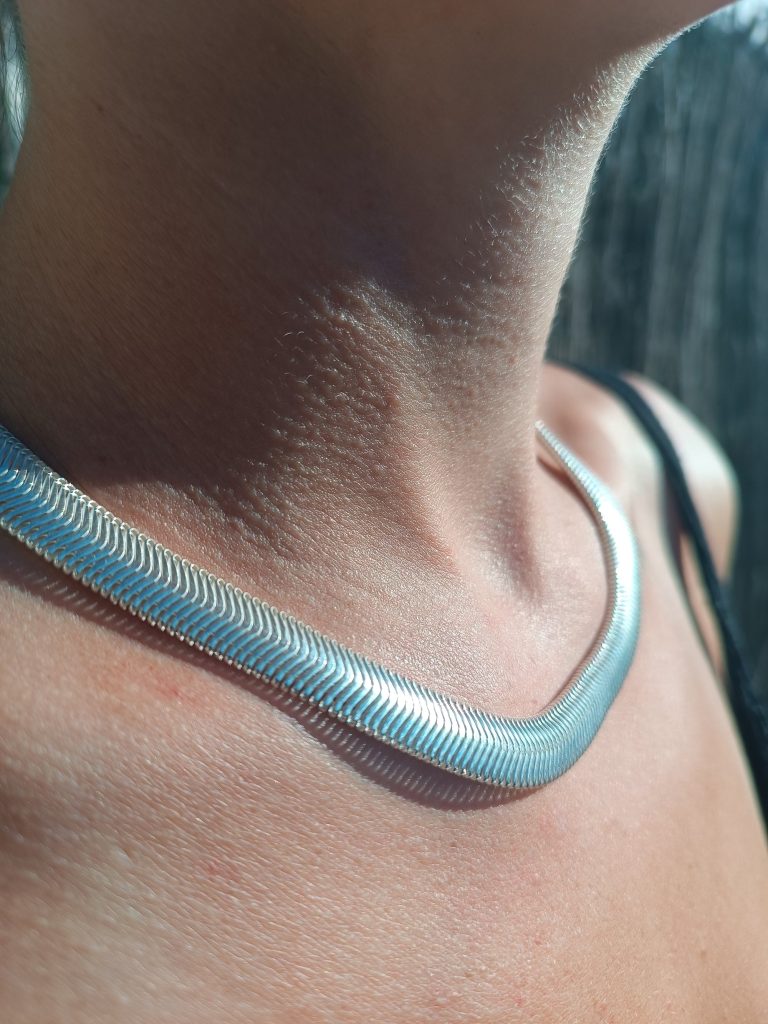 The Cashmere Chain is a masterclass in artisanal engineering. By utilizing high-grade 925 silver—a precious metal alloy of 92.5% pure silver and 7.5% strengthening agents—we’ve created a chain that is as durable as it is luminous. Unlike plated fashion jewelry, this solid piece reflects light with a natural, “Intelligent Beauty” glow that deepens with wear. Its interlocking flat-plate design ensures it lies flat against the skin, offering a chemical-free, high-end finish that is unrivaled in its sophistication.