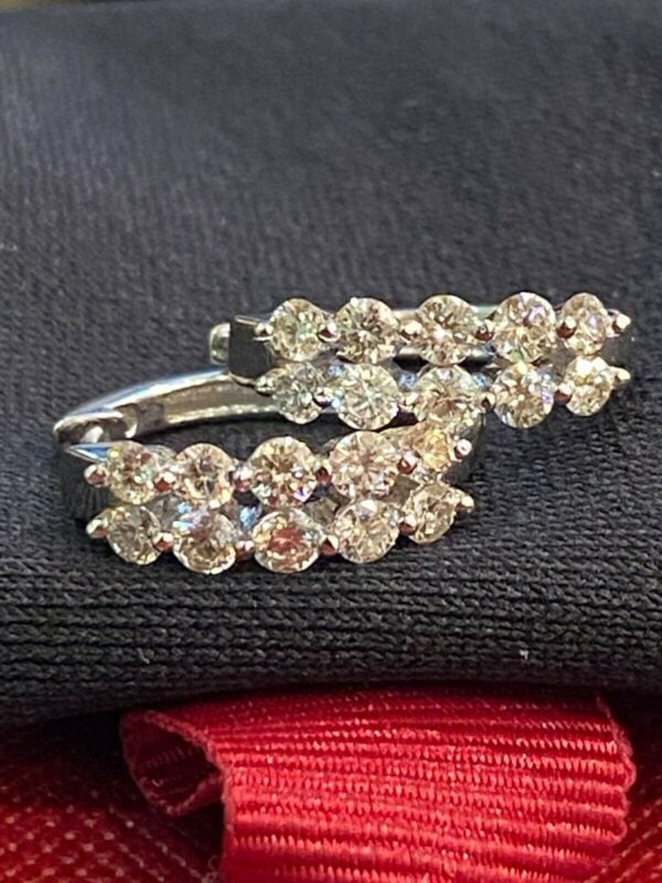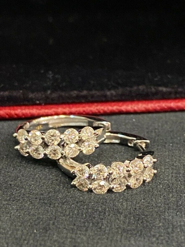 Elevate your everyday aesthetic with a masterclass in light performance. The Dual-Row PavĂ© Hoops reimagine the classic silhouette with two continuous lines of precision-set brilliant stones. Engineered to capture light from every angle, these earrings offer a seamless “wall of ice” effect, providing a sophisticated glow that bridges the gap between modern minimalism and high-jewelry opulence.