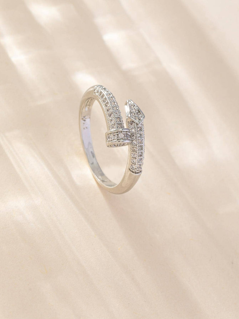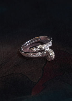 This ring is a masterclass in modern jewelry engineering. Crafted from high-grade silver and finished with a mirror-polished luster, the nail design wraps the finger in a continuous, structural loop. The head of the nail is accented with radiant pavé-set stones, providing a sharp contrast to the sleek, minimal band. This is more than an accessory; it is a fusion of medical-grade safety and provocative, high-end design.