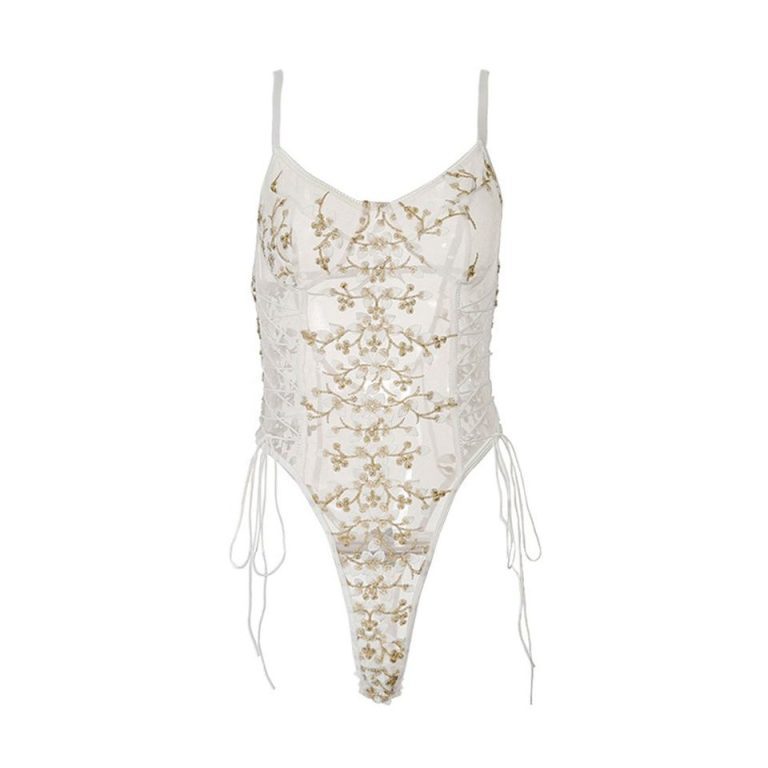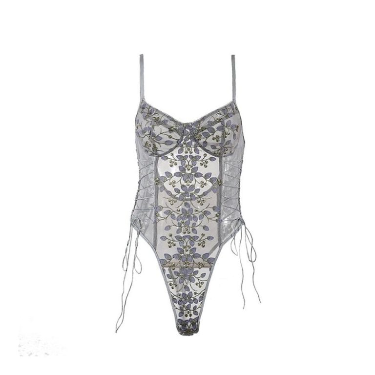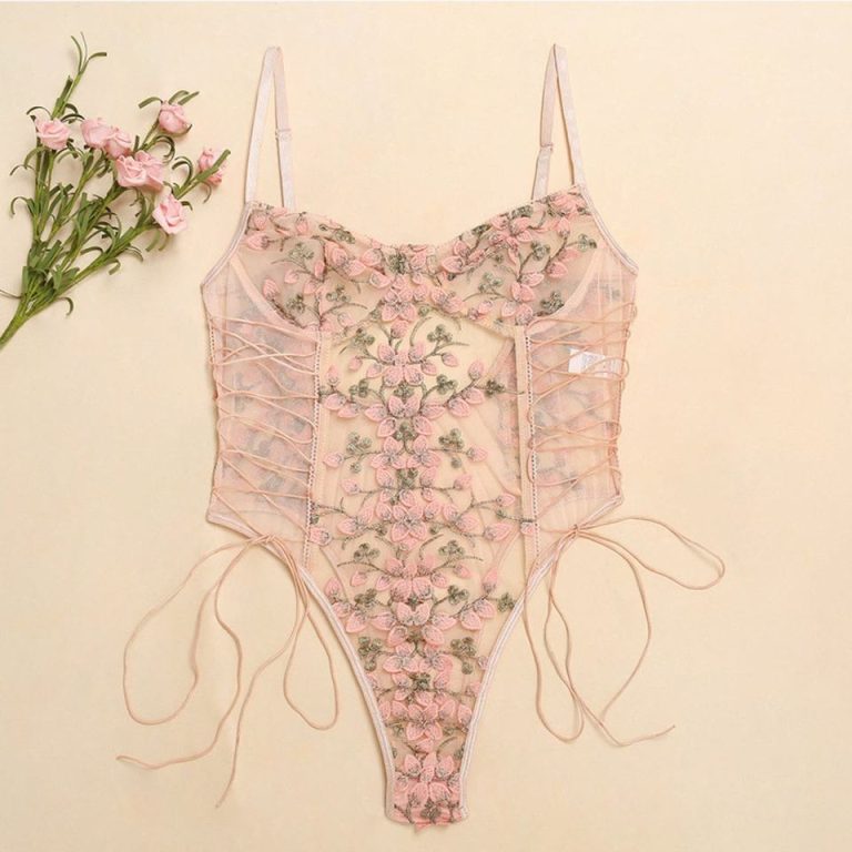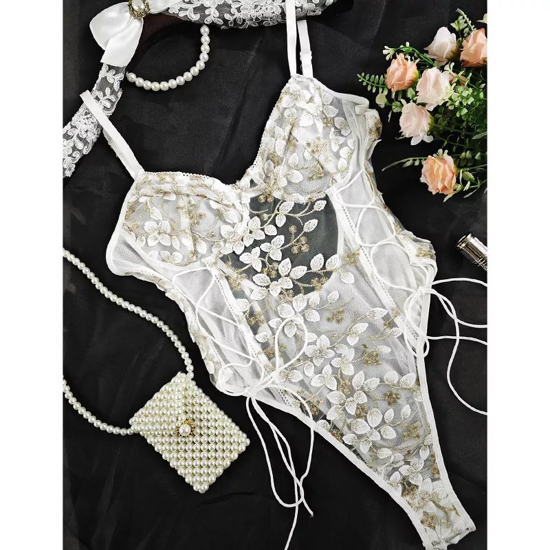 This embroidered mesh bodysuit lingerie is designed to make a bold yet elegant statement. Featuring a structured silhouette with sheer mesh panels and intricate floral embroidery, it enhances your natural curves while offering a confident, sculpted fit. The underwired cups provide gentle support, while lace-up side detailing adds a sensual, adjustable touch. Perfect for special occasions or elevated intimate wear, this piece blends allure with refined craftsmanship.